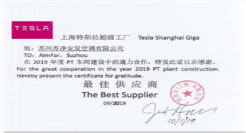 經過兩個半月的辛苦付出,現已成功進入試生產階段。高效的對接、高質的施工、高能的團隊得到了用戶的一致好評,特斯拉公司特授予最佳供應商和最佳項目經理榮譽稱號。