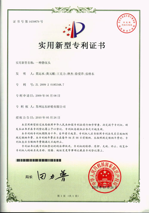 近日,國家知識產權局審核通過了公司控股子公司——蘇州遠東砂輪有限公司開發研制并組織申請的三項實用新型專利(開卷收卷機構定位裝置、設計的靜壓頭和切邊機),授予公司專利權并頒發實用新型專利證書。(遠東公司提供)