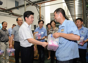 7月12日下午,蘇州市總工會主席溫祥華等市總領導,在創元投資紀委書記郁天、公司控股子公司蘇州軸承總經理沈洪洋、黨委書記傅勤衡的陪同下,來到公司控股子公司蘇州軸承生產車間現場,向在高溫下堅守生產崗位的一線員工表示慰問,叮囑員工們在保質保量的同時,一定要注意勞逸結合并送上了夏季防暑清涼用品。在與公司領導交談中,溫主席一行詳細詢問了蘇州軸承防暑降溫和安全生產工作,他要求蘇州軸承一定要把防暑降溫和安全生產措施落到實處,切實保障好夏季高溫一線員工的生產安全和身體健康。